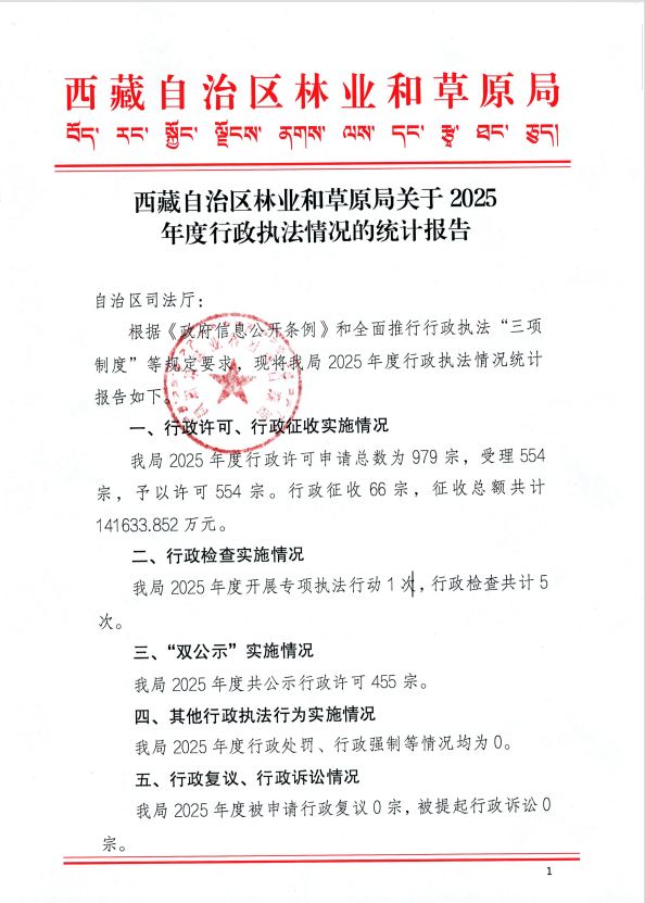 关于2025年度行政执法情况的统计报告